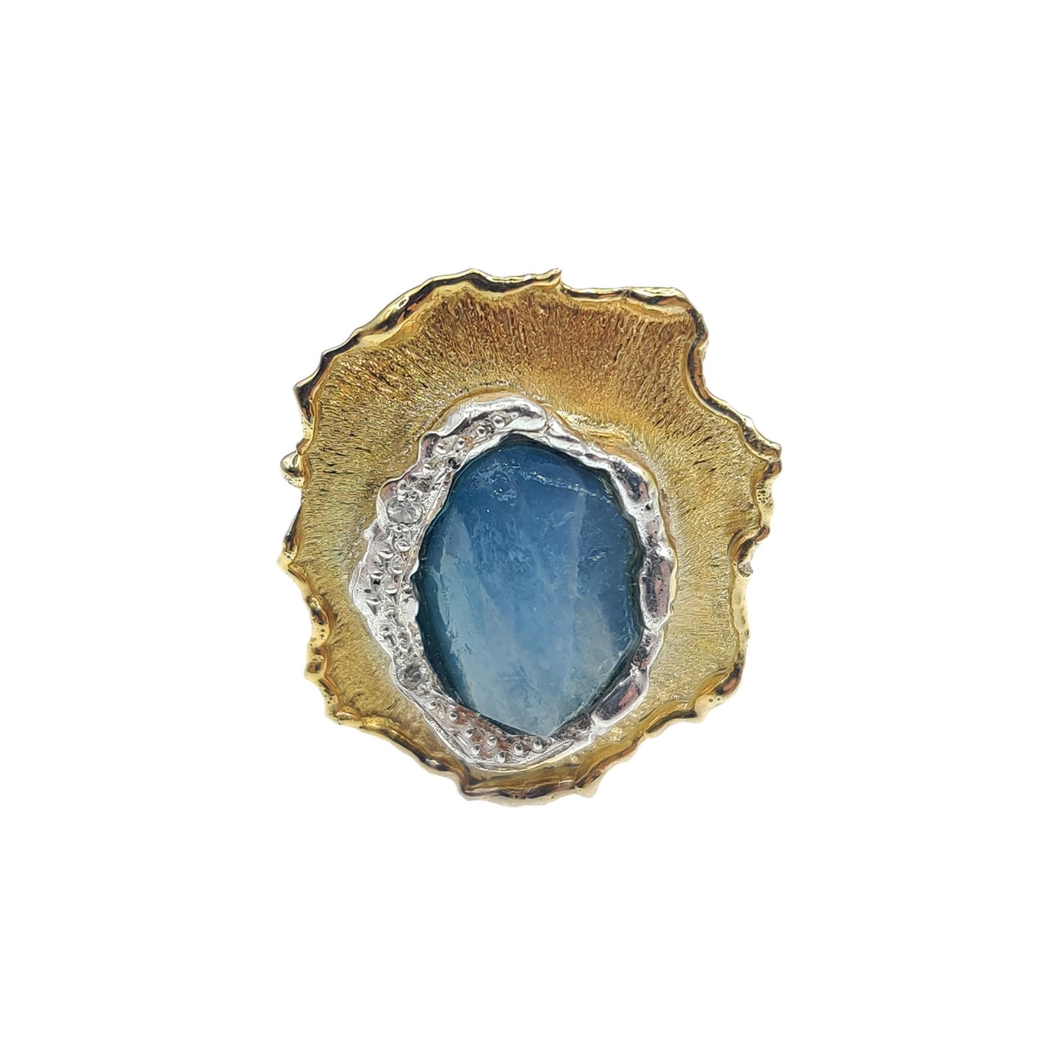 Δαχτυλίδι από Χρυσό K14 και Ασήμι με Άκουαμαρίνα