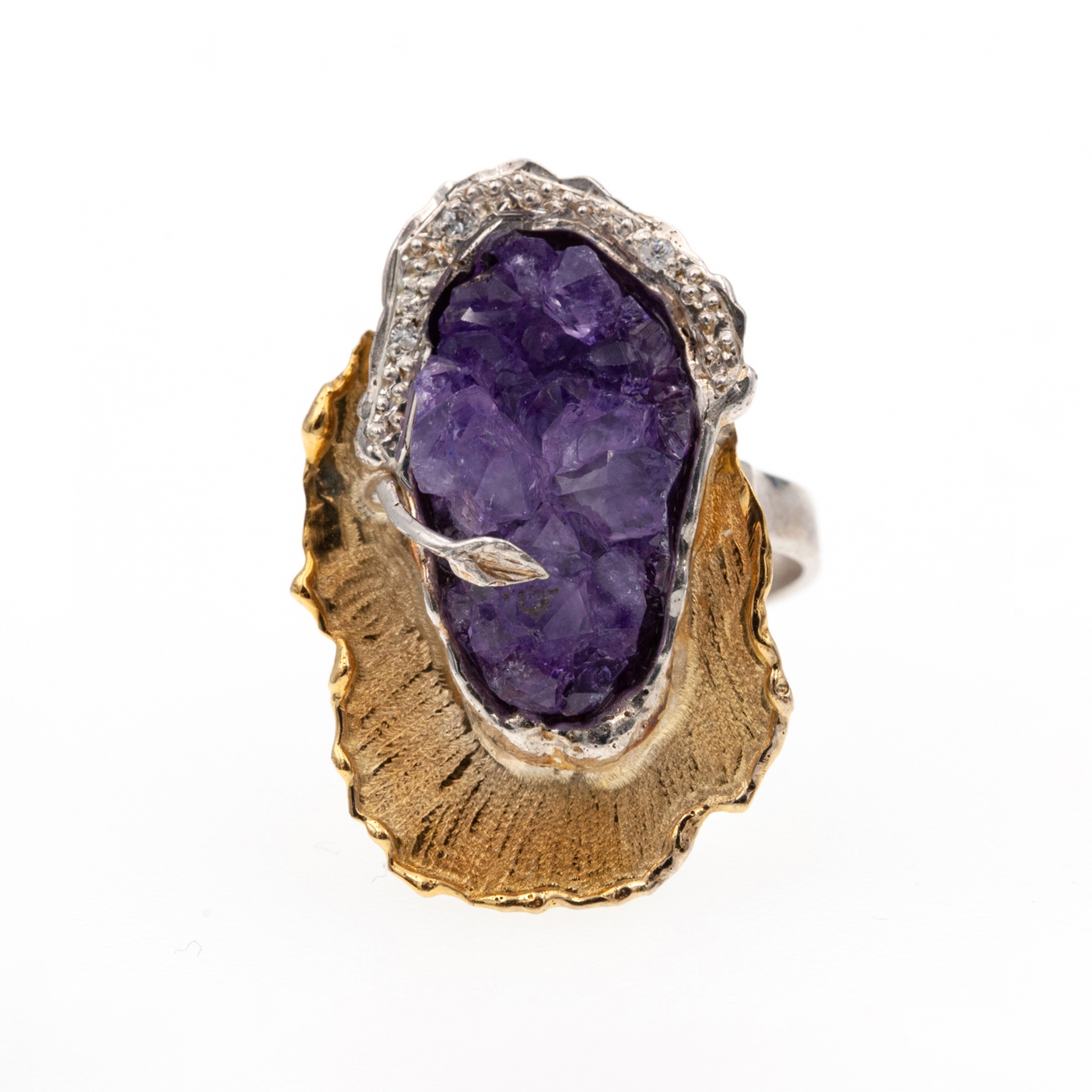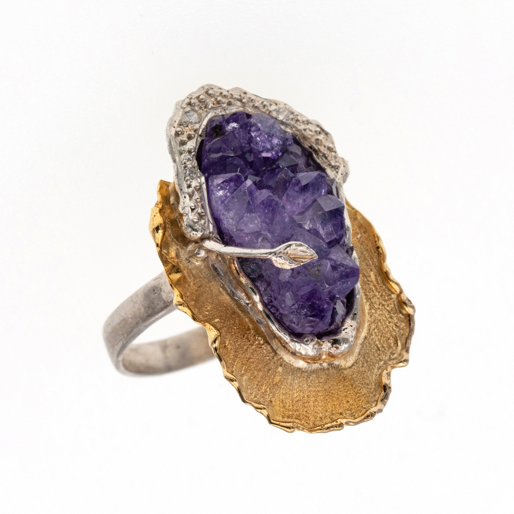 Δαχτυλίδι από Χρυσό K14 και Ασήμι με Αμέθυστο