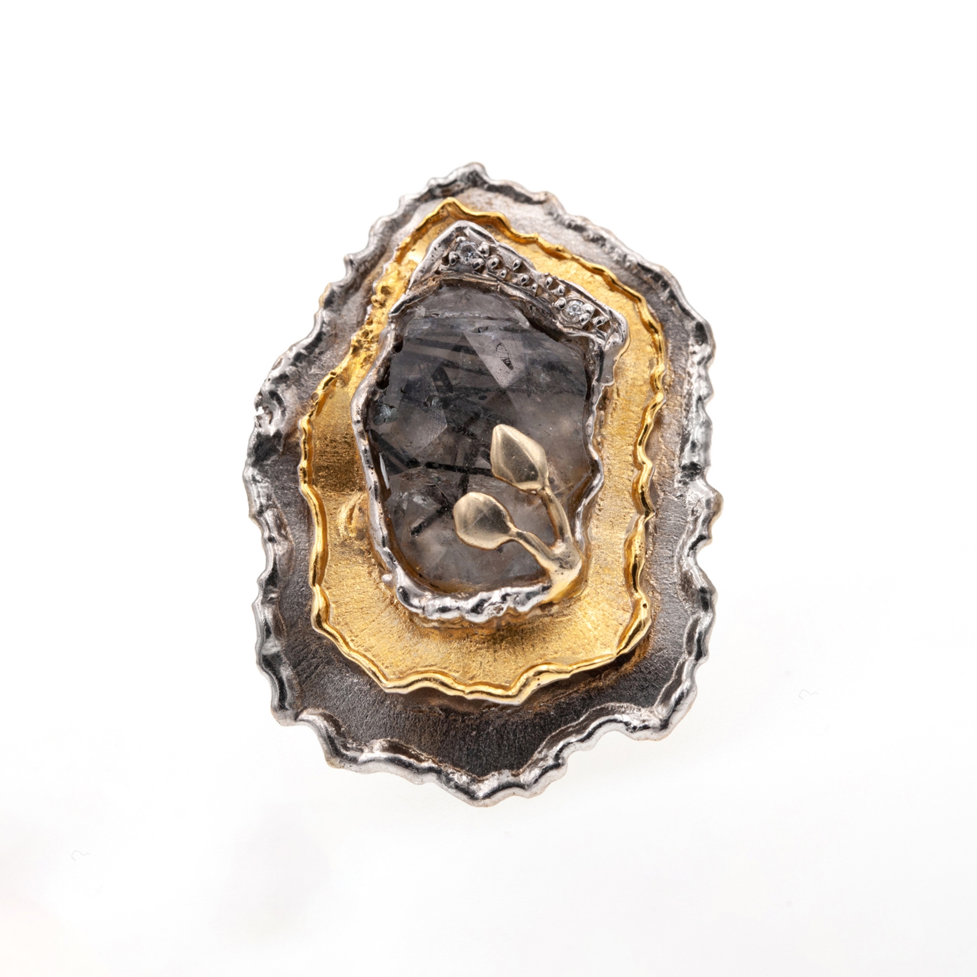 Δαχτυλίδι από Χρυσό K14 και Ασήμι με Χαλαζία με Μαύρη Τουρμαλίνη