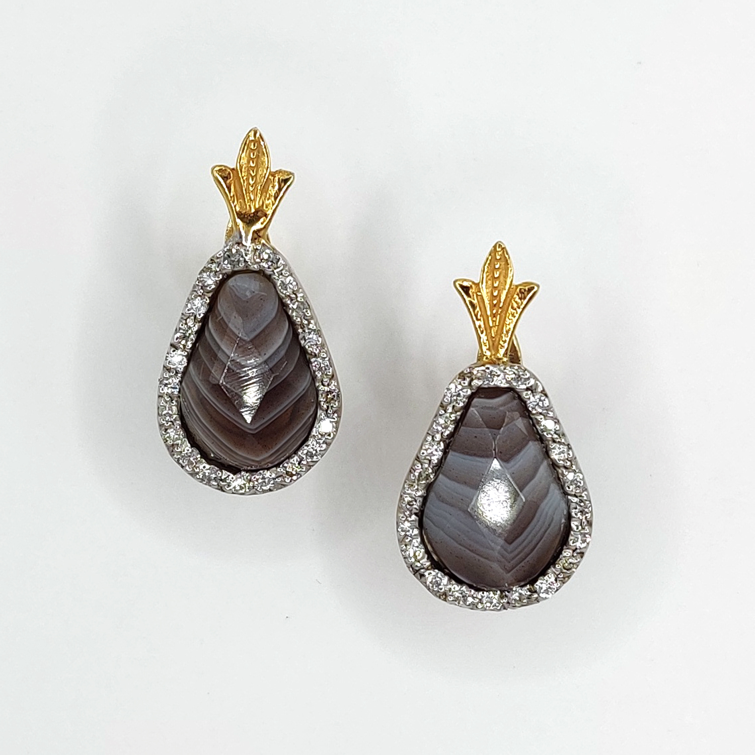 Σκουλαρίκια από Χρυσό K14 και Ασήμι με Αχάτη