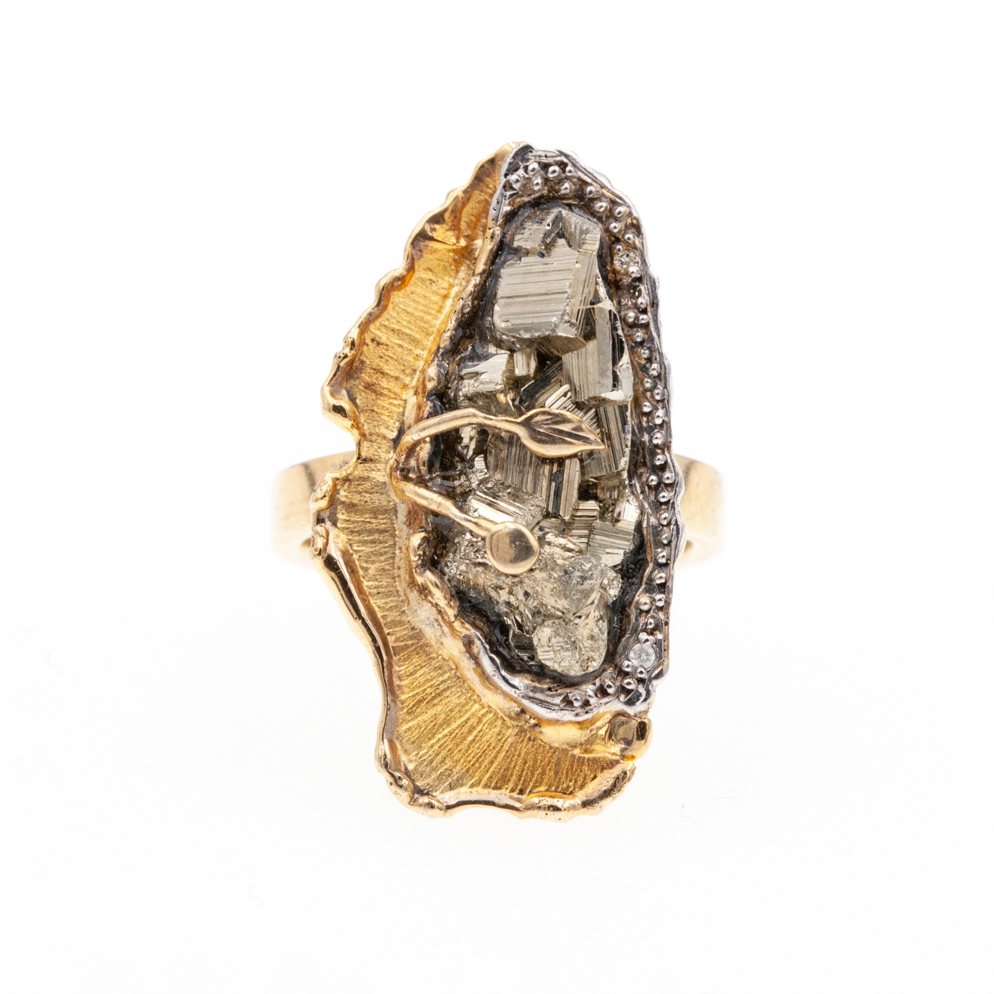 Δαχτυλίδι από Χρυσό K14 και Ασήμι με Σιδηροπυρίτη