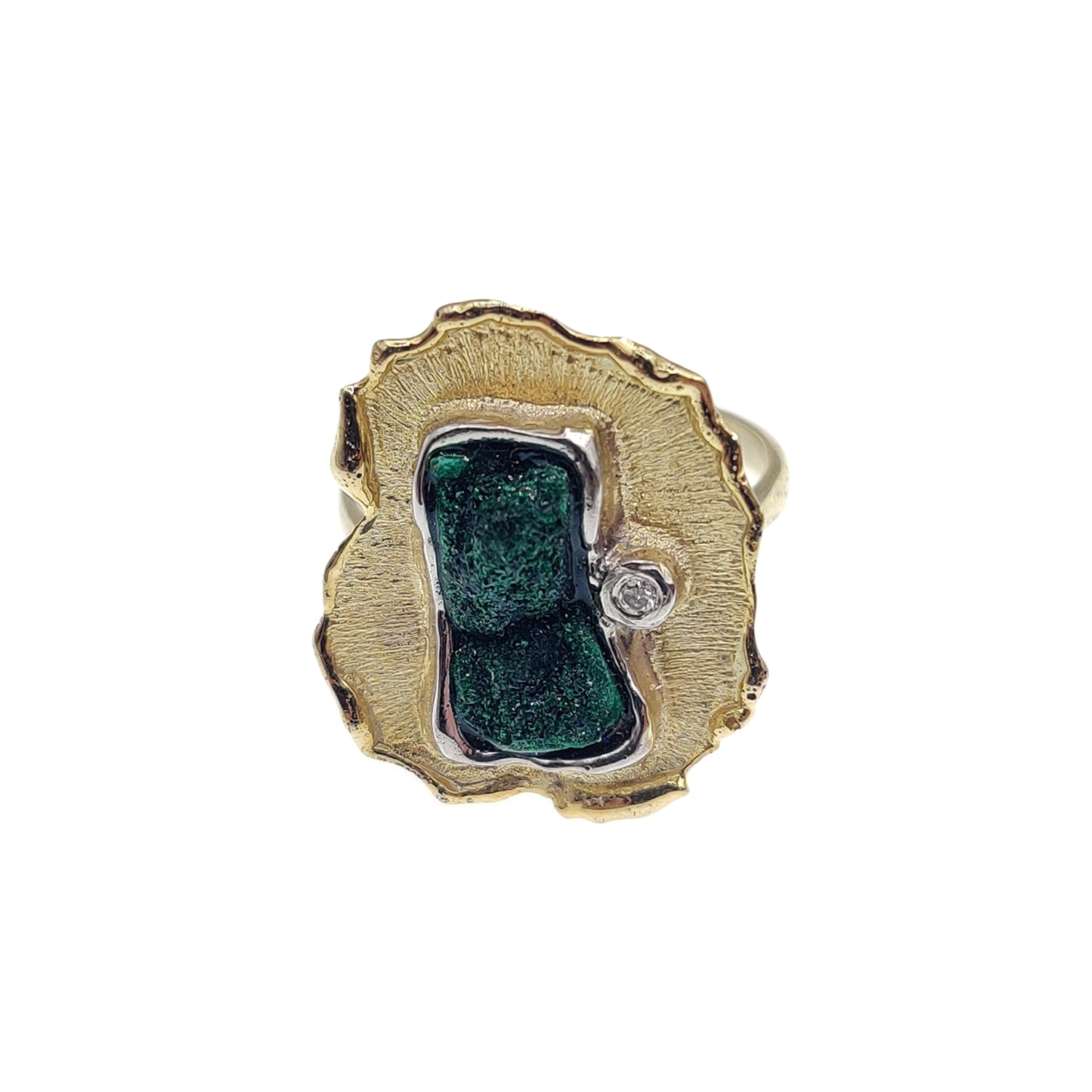 Δαχτυλίδι από Χρυσό K14 και Ασήμι με Μαλαχίτη