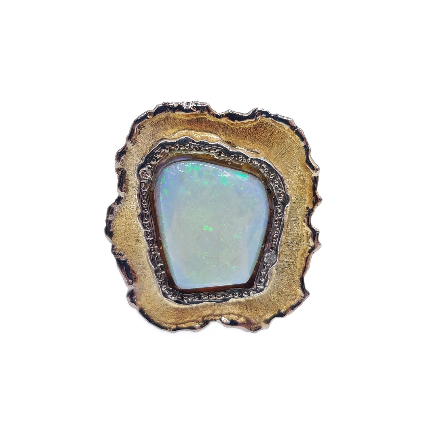 Δαχτυλίδι από Χρυσό K14 και Ασήμι με Οπάλιο