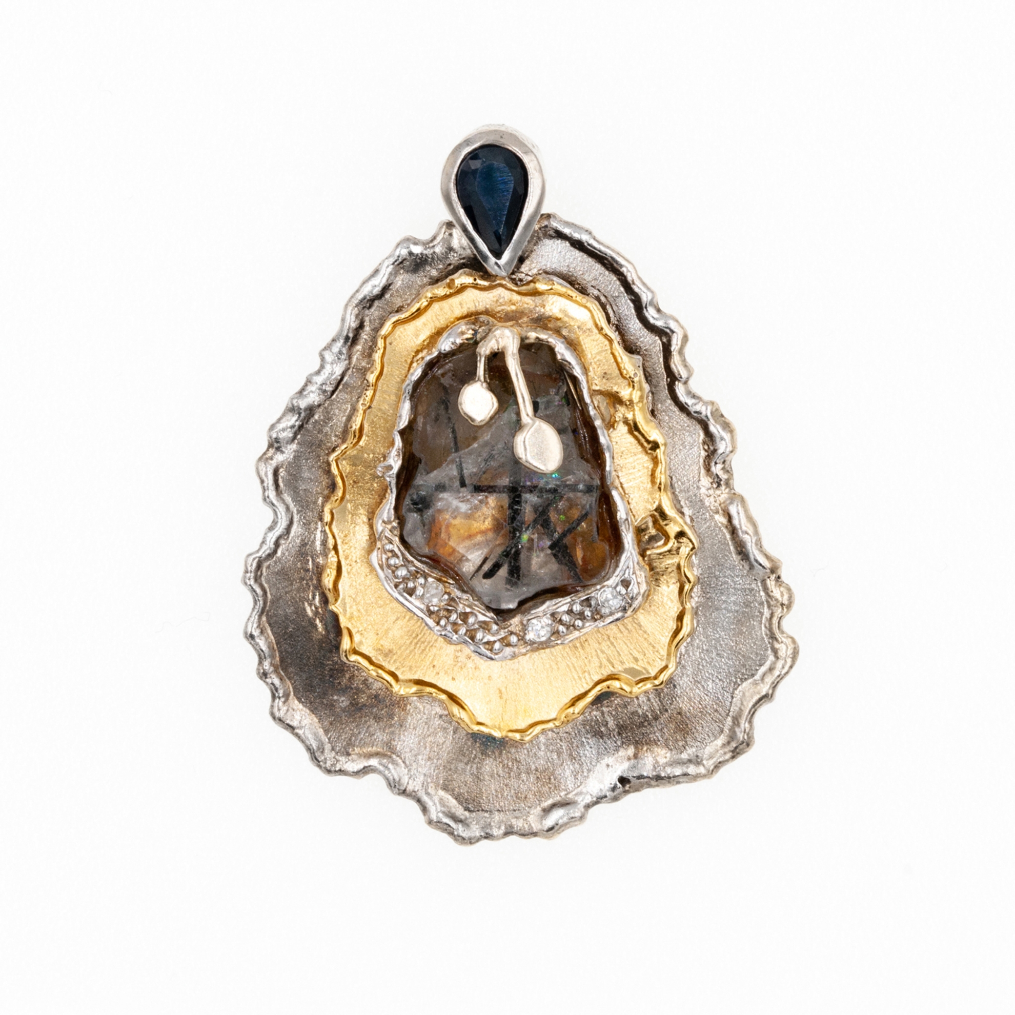Μεταγιόν από Χρυσό K14 και Ασήμι με Χαλαζία