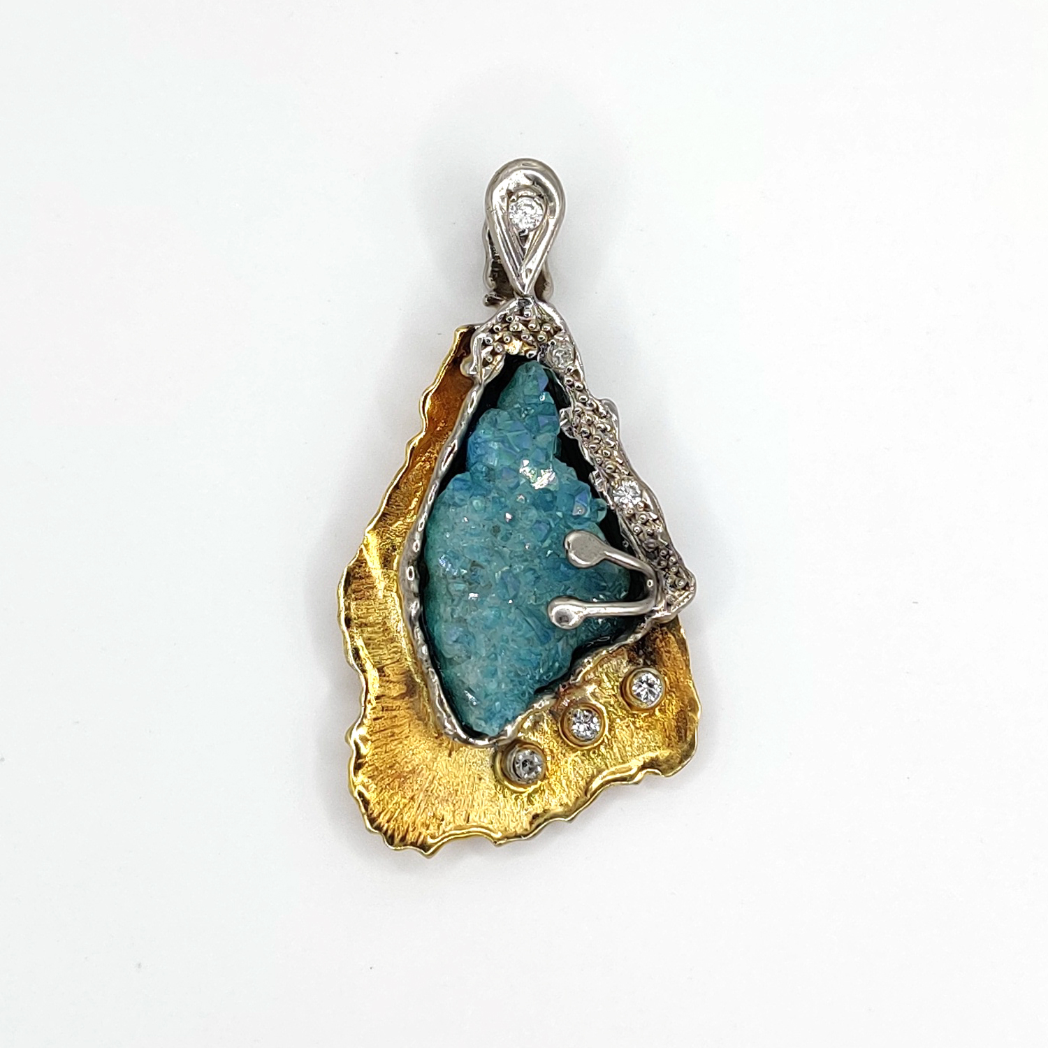 Μεταγιόν από Χρυσό K14 και Ασήμι με Aqua Aura