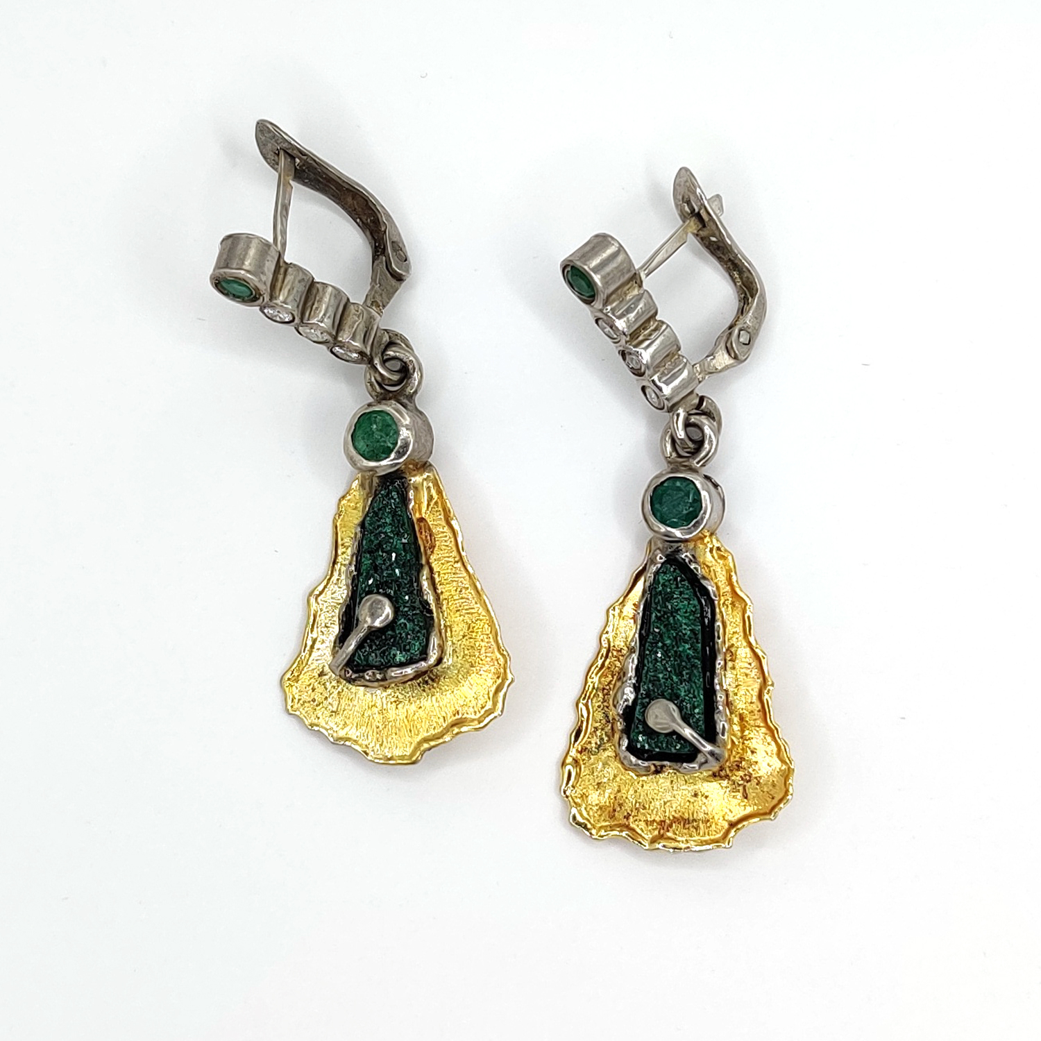 Σκουλαρίκια από Χρυσό K14 και Ασήμι με Μαλαχίτη