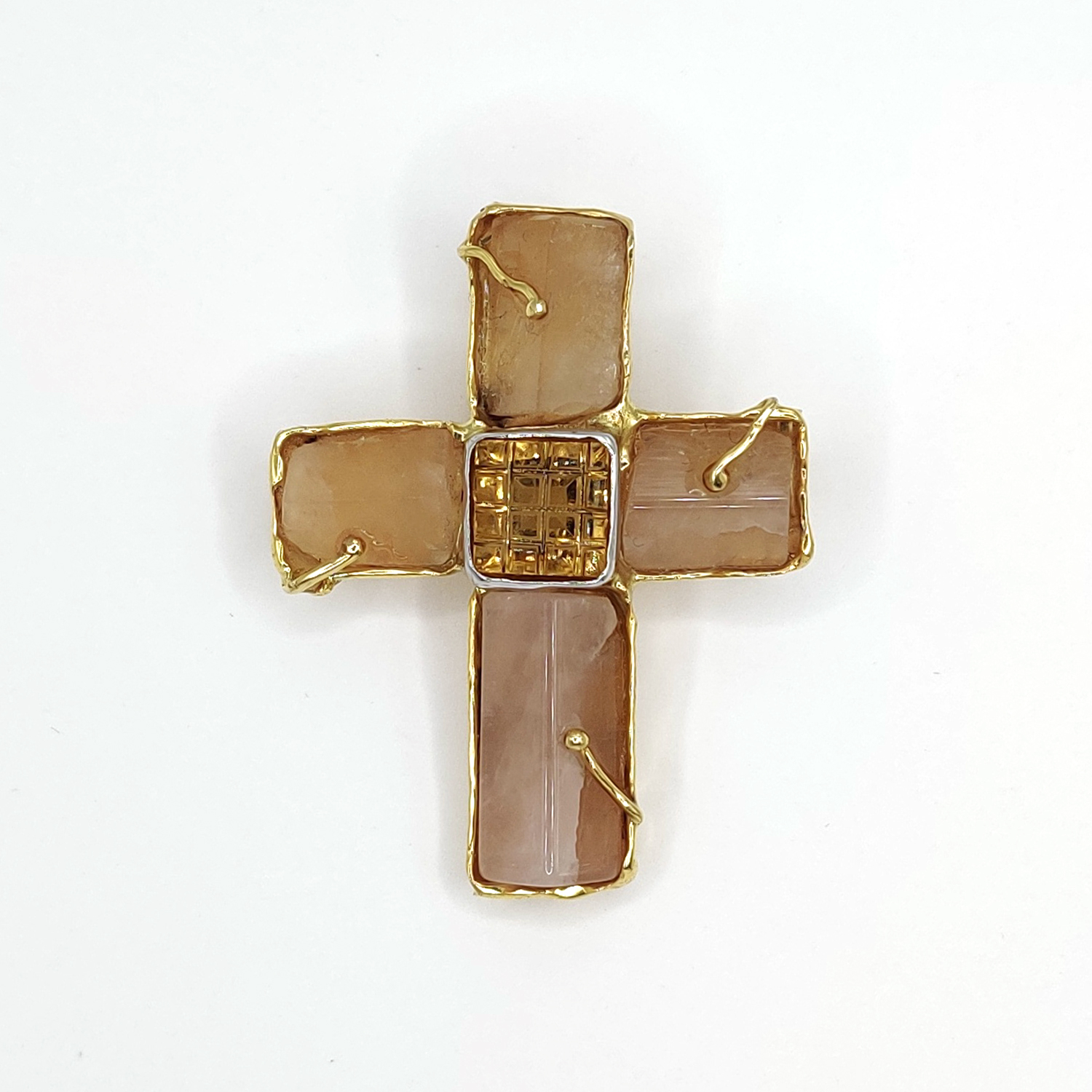Χρυσός K14 Σταυρός με Τουρμαλίνη και Κιτρίνη