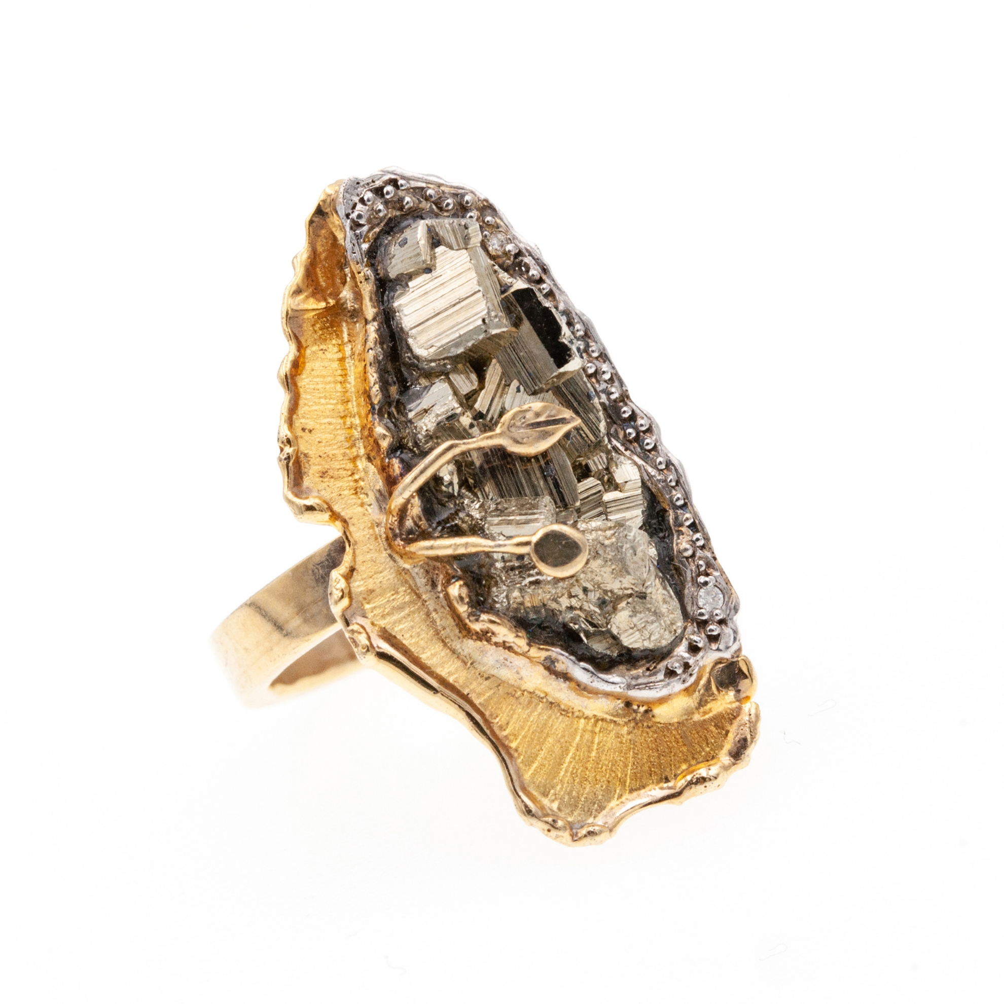 Δαχτυλίδι από Χρυσό K14 και Ασήμι με Σιδηροπυρίτη